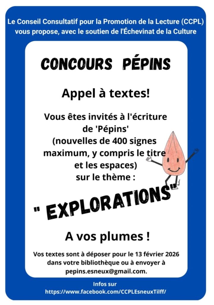 Le concours pépins, un défi d’écriture d’histoire très brèves aura comme échéance le 13 février 2026.
